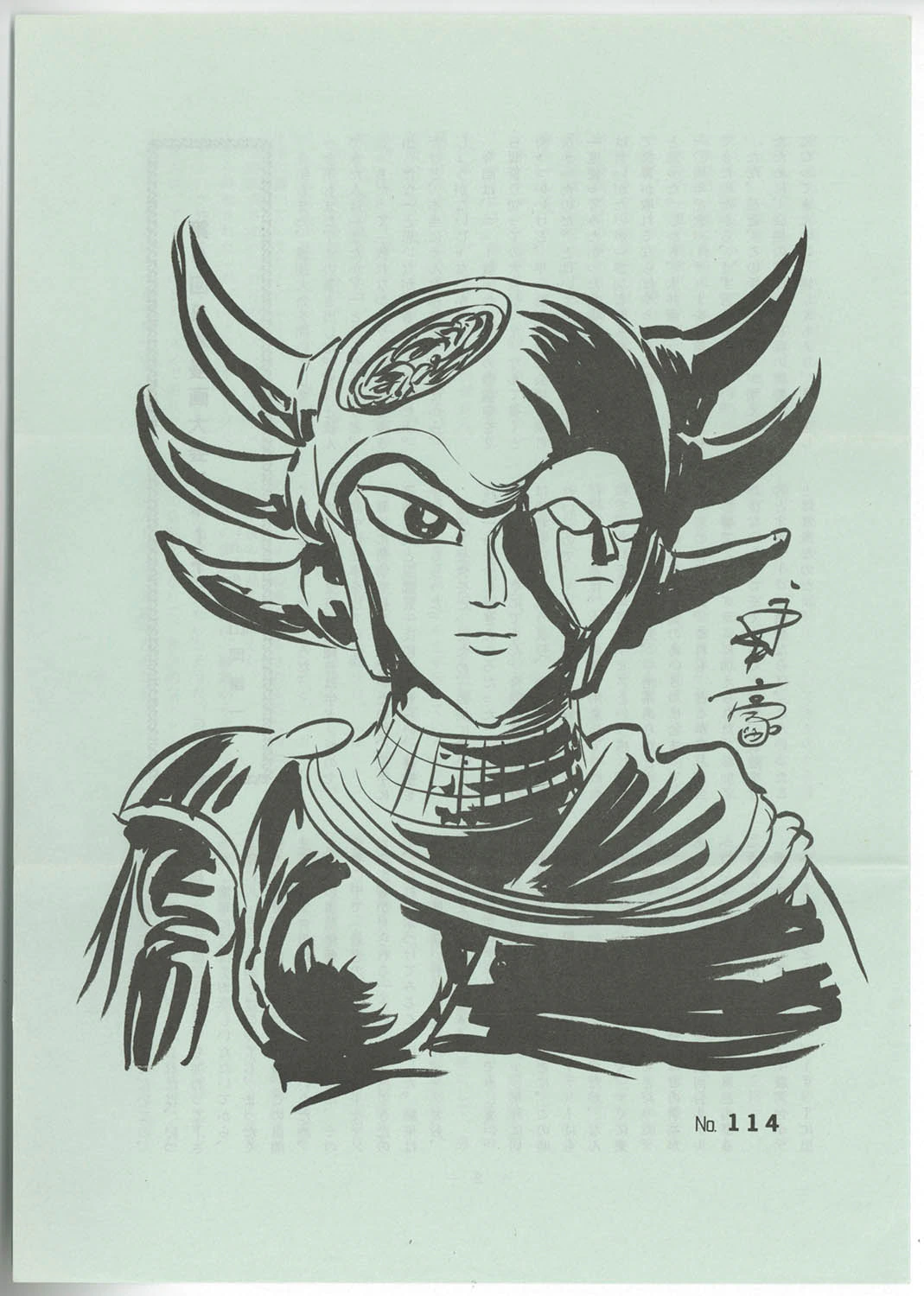 This illustration of Commander Makara is by Go Nagai and features in the Go Nagai Fan Club Associate Magazine "Makai Tsuushin" (Demon Realm Communications).