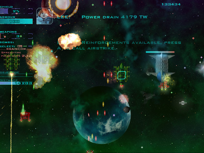 It features lots of arcade action, weapons and explosions.