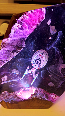 While that's getting done, here's a picture of a great present that I received at Christmas, which is a colour-changing light with a little Enterprise inside a shiny block of resin.