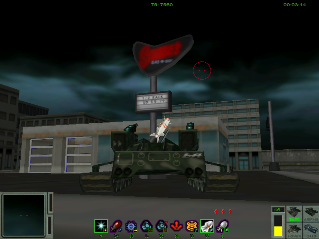 I finished Recoil, since I'd already played it up to the second-last level. In the last level, which starts off in a bombed-out city, you find Stubbie's Gas + Go, which seems like a well-run business, where, according to this, you can get a half-rack of ribs for $5.79. Even though the robots have created an otherwise dystopian future, they seem to have inflationary forces well under control. There is a bit of a knack to get Recoil working under Windows 11 these days. Anyway, I really love it for some reason. It's kind of perfectly-formed and leaves you wanting more at the end. You can download it from My Abandonware. I used the nGlide method mentioned in the comments to get it ticking over. Comments